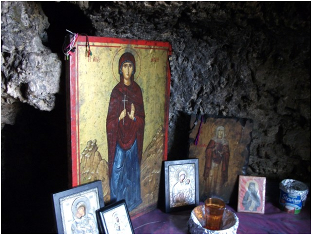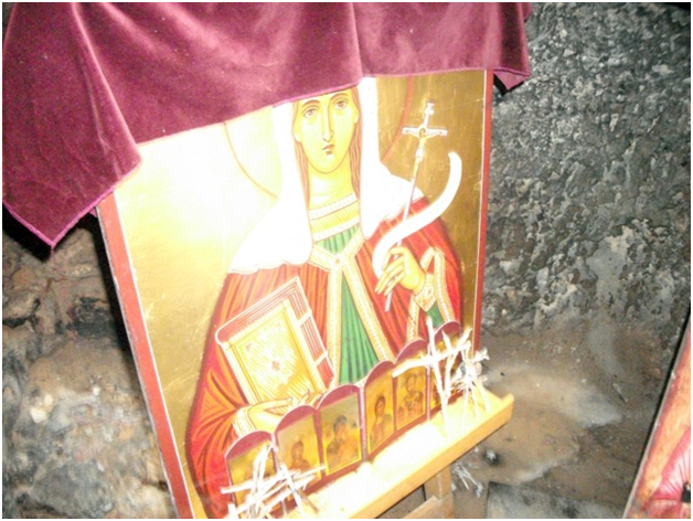 В этой небольшой катакомбной церкви стоят иконы святой Фёклы, и всегда горят свечи и лампады. Паломники приносят цветы, украшения в знак благодарности святой Фёкле.