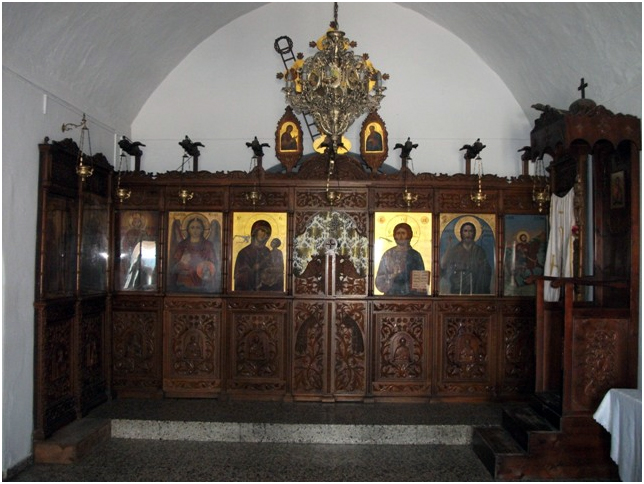 Внутри церковь совсем небольшая, на аналое стоит икона святой Фёклы, здесь можно поставить свечу и помолиться. Привлекает внимание небольшой алтарь уникальной резьбы по дереву с изображением святых, особо почитаемых на Кипре. В Духов день (Катаклизмос), или в день Святой Троицы, здесь совершается богослужение и крестный ход с освящением воды.