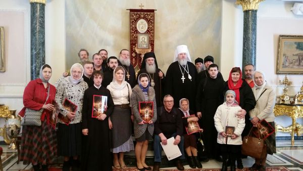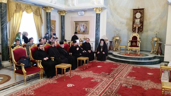 6 февраля состоялась встреча паломников с Патриархом Иерусалимским Феофилом II. Владыка Кирилл обратился к Патриарху со словами приветствия, поблагодарил за прием и вручил в подарок святую икону.