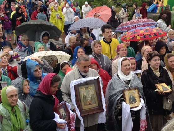 Дождь и прохладная осенняя погода никому не смогли испортить радостного и благостного настроения. К месту сбора собралось до тысячи человек, взрослые и дети, которые после Божественной Литургии в Храме Илии Пророка в селе Ильинском прошли с иконами и хоругвями по историческому маршрут- от села Ильинское до села Усово. Шествие продолжалось с 11.00 до 15.00.