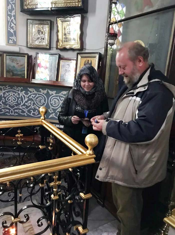 Затем делегация посетила региональное отделение ИППО в Вифлееме, где от имени Екатеринбургского отделения ИППО вручила председателю местного отделения гсподину Дауду Матару «Православную энциклопедию Урала», изданную в 2017 году в городе Екатеринбурге.