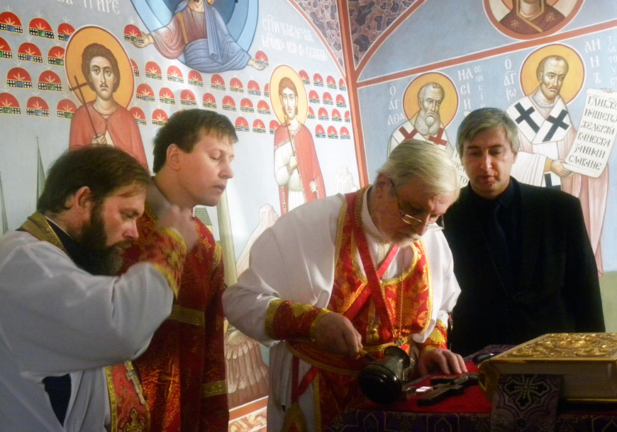 Руководитель ИППО в городе Трире Тимофей Китнис отметил, что одной из причин, способствовавших утверждению Православия в Трире стали святыни, с древних времён пребывающие в этом городе. Ещё до Миланского эдикта, в период гонений на христиан, в Трире была утверждена первая на территории современной Германии епископская кафедра. Епископы Евхарий и Валерий начали здесь активную проповедь христианства. Отсюда в свой знаменитый поход на Рим отправился святой равноапостольный император Константин. Согласно церковному историку профессору Бриллиантову, именно в пригороде Трира сомневающемуся Константину было явлено знамение Креста, вдохновившее его изобразить Крест Господень на воинских знамёнах. Уже после обнародования Миланского эдикта мать императора святая равноапостольная Елена после паломничества на Святую Землю передала в Трир великую христианскую святыню — нешвенный хитон Христов. В это же время в город святым епископом Агрецием были переданы мощи святого апостола Матфия, которые хранятся тут по сей день. В 1356 году в Трир была перенесена и Честная глава святой равноапостольной царицы Елены.
