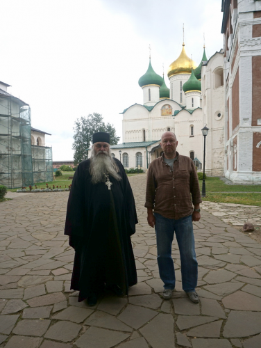 Затем члены делегации приложились к мощам святителей Феодора и Иоанна Суздальских чудотворцев, почивающих в Казанском храме на торговой площади, приложились к мощам св. благоверной княгини Евфросинии Суздальской в Ризоположенском женском монастыре и в Успенской церкви на Княжьем дворе к мощам святителя Арсения Элассонского.