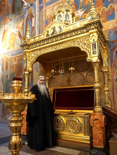 Архимандрит Тихон (Затёкин) у мощей св. прп. Евфросинии Суздальской