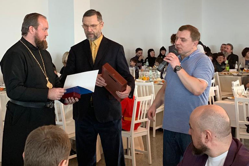 На церемонии открытия директор Славянского фонда России Кирилл Мирейский и протоиерей Вячеслав Бачин вручили почётному консулу России в г. Бари Микеле Боллеттьери орден святых равноапостольных Кирилла и Мефодия за труды по укреплению российско-итальянских отношений.