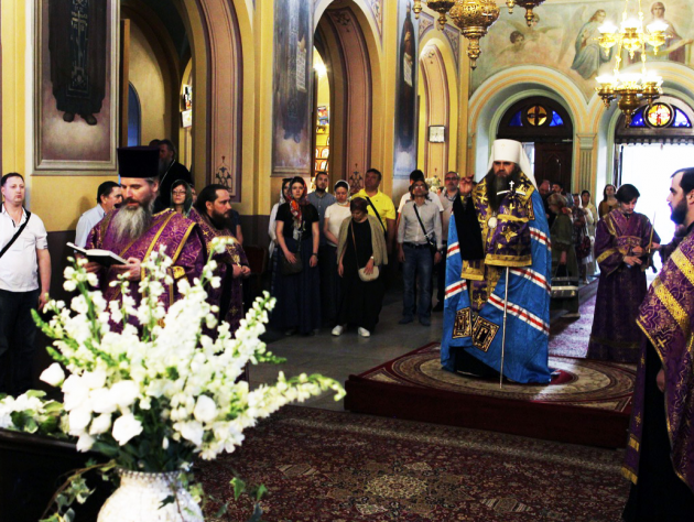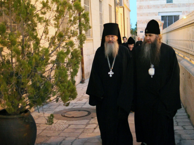 Делегация посетила Русскую Духовную Миссию в Иерусалиме. В Троицком соборе, где гостей приветствовал начальник Миссии архимандрит Александр (Елисов), владыка Георгий возглавил служение благодарственного молебна.