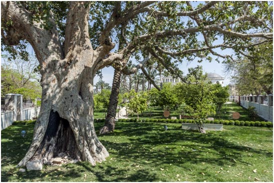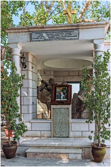 …У греков – своя смоковница, свой монастырь. Храм обители, освящённый во имя пророка Божия Елисея, однокупольный, с небольшой двухпролётной колокольней, построен в 1882 г. на средства русской благотворительницы Марии Михайловны Киселёвой. Во дворе, слева по аллее к храму, находится главная святыня монастыря – сикомора (смоковница) Закхея. От дерева остался только огромный сухой пень с обрубленными мощными сучьями, между которыми поставлена икона, изображающая Спасителя, обращающегося к сидящему на дереве мытарю.