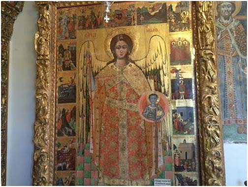 Подлинной реликвией является большая храмовая икона Архангела Михаила. Известный русский монах-путешественник В. Григорович-Барский так сказал про эту икону: «она выполнена с таким искусством и в таком измерении, что наполняет каждого смотрящего на неё необычайным волнением и необъяснимым беспокойством. И не существует во всём Кипре другого такого образа, который бы мог сравниться с ним как по силе воздействия и размерам, так и по технике исполнения». Эти слова известного русского путешественника не потеряли актуальность и в наши дни.