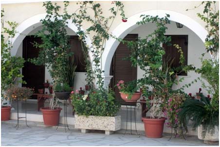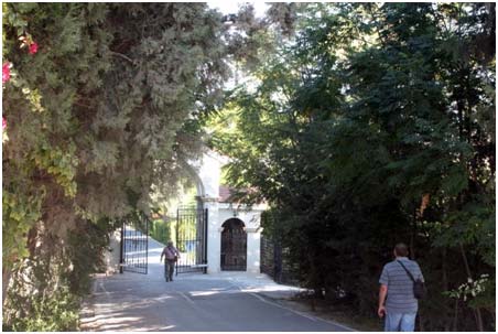 У самой арки Святой Георгий изображен на мозаичной иконе. Еще одна встреча с православным воином ожидает посетителей в маленькой предвратной церкви Святого Георгия, утопающей в бело-сиреневой купели цветущих деревьев и находящейся справа от дороги, ведущей к монастырскому комплексу. Здесь с иконы взирают святые Георгий и Димитриу, сидящие на конях.