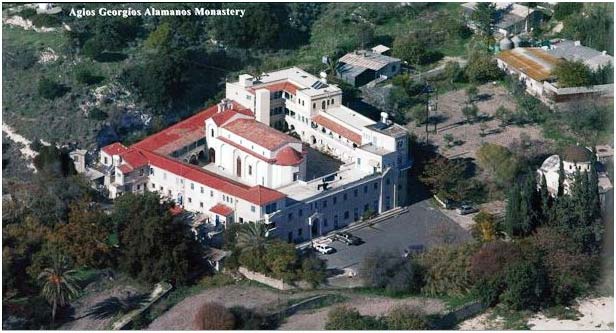 Вначале была построена небольшая церковь Святого Георгия. Кто построил ее и когда это произошло, неизвестно. Как мужской монастырь обитель Святого Георгия Аламану отмечена на карте времен венецианского правления.