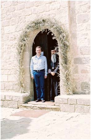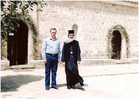 Игумен Кипрского монастыря Мавровуни архимандрит Симеон и председатель Кипрского отделения ИППО Л. А. Буланов около монастыря Мавровуни, 2009 год
