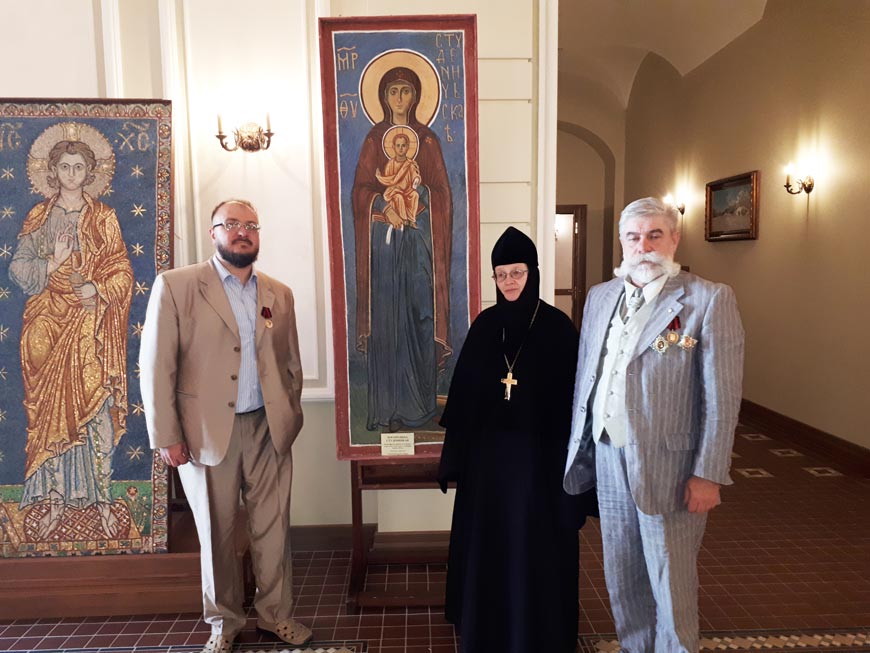 На фото члены калужской делегации у стенда в музее, рассказывающего о поездке в Святую Землю Калужского отделения ИППО. Поездка была организована для передачи в дар храму Марии Магдалины в Гефсимании, в котором покоятся мощи княгини Елизаветы Фёдоровны, иконы Елисавета Феодоровна и Благословенная Калужская Земля в рамках международного просветительского проекта «Духовная связь Калуга – Иерусалим».