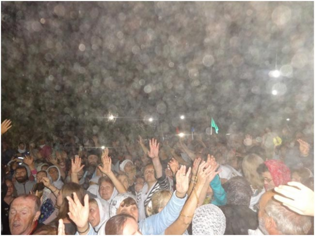 В три часа ночи после длительной Литургии (она началась в десять часов вечера 18 августа) и заключительной проповеди Иерусалимского Патриарха сошло Благодатное облако. В этом году оно было только над православным монастырём Преображения Господня.