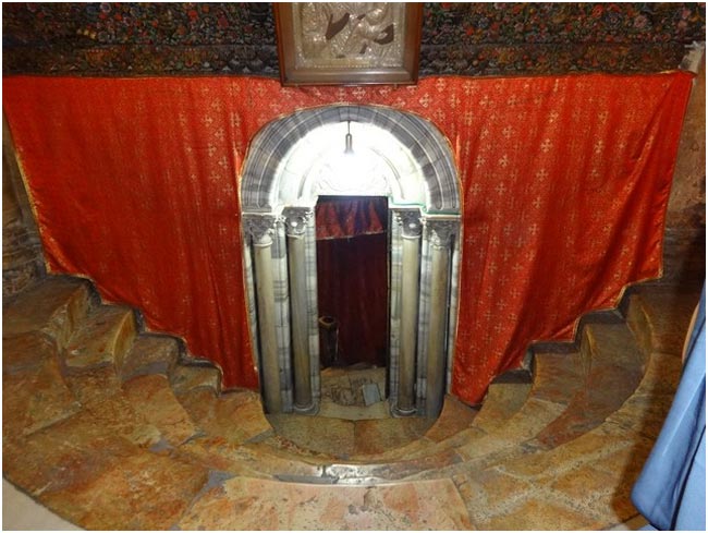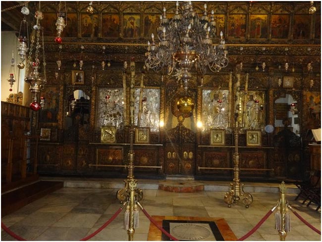В центральной нише находится престол, а под ним серебряная звезда, обозначающая место, над которым остановилась Вифлеемская звезда, когда родился Спаситель Мира.