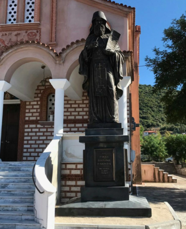 Памятник Силуану Афонскому в селе Гомати на полуострове Халкидики