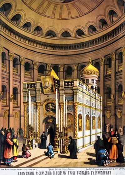 Купол Ротонды был, быть может, самым уязвимым местом Храма во всей его многострадальной истории. Его сожгли персы (и восстановил Патриарх Модест в 630 году), разрушил Хаким Безумный (и восстановил Константин Мономах). В Российском Государственном архиве древних актов сохранились документы о том, как Московское правительство в XIV веке посылало деньги на ремонт обвалившегося Купола. О катастрофе 1808 года мы уже говорили. Но и восстановленный после пожара купол был серьёзно повреждён землетрясением 1834 года. Тогда возникло даже известное в истории дипломатии «Дело о Куполе». Ведь ремонт в Храме Гроба Господня – всегда не просто ремонт. Кто починит Купол, тому он и должен принадлежать. После долгих дебатов пришли к «консенсусу»: работа проводилась по совместному проекту русского архитектора М. И. Эппингера и француза К. Маусса, средства дали российское и французское правительства, а когда работы были окончены, в 1869 году символические «ключи» от починённого Храма французский консул, в присутствии российского, передал турецкому губернатору Иерусалима, а тот вручил их, по принадлежности, православному Патриарху.