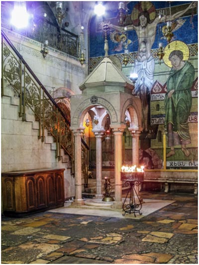 ...Повернув влево от Камня Помазания и пройдя мимо Кивория Трёх Марий и лестницы, ведущей на галерею, в армянский храм, входим в Ротонду.