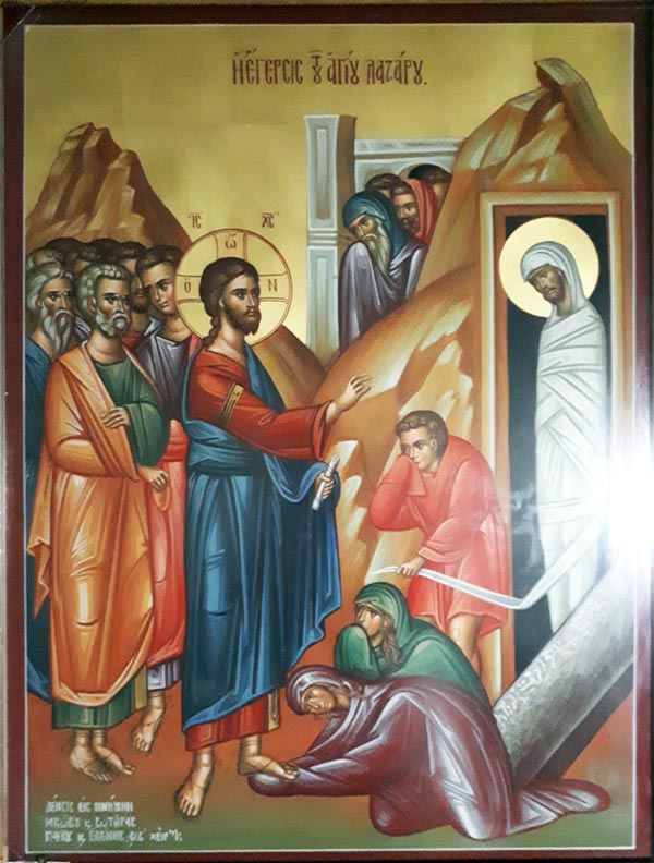 По Евангелию Святой Лазарь из Вифании был братом Марии и Марфы. Он был смертельно болен, и сёстры послали сказать Ему об этом. Тогда Иисус сказал Своим ученикам: «Эта болезнь не к смерти, но к славе Божией, да прославится через неё Сын Божий». Спаситель отправился в Вифанию на третий день после того, как узнал о том, что Лазарь умер. Промедление было связано с желанием воскресить по-настоящему умершего, тело которого уже было тронуто тлением, чтобы никто не мог сказать, что это не воскрешение, а просто пробуждение спящего или лишившегося чувств.