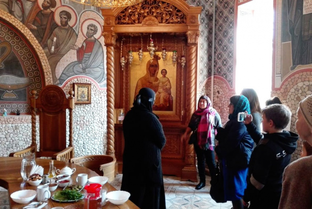По благословению наместника обители игумена Стефана монахом Алексием для ростовчан была проведена экскурсия по монастырю, в ходе которой паломники ознакомились с монастырскими святынями. Они посетили и Богоявленский женский монастырь, в котором монахиня Георгия рассказала гостям об истории обители и её святынях.