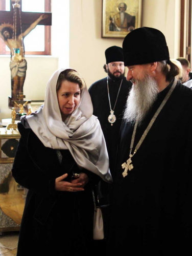 В храме святой мученицы царицы Александры Медведеву приветствовали руководитель управления по загранучреждениям Московской Патриархии епископ Богородский Антоний и начальник миссии архимандрит Александр Елисов. Светлана Медведева поклонилась святыням храма, выразив удовлетворение тем, что в центре христианского мира многолетними трудами служителей миссии сохраняются традиции русского Православия.