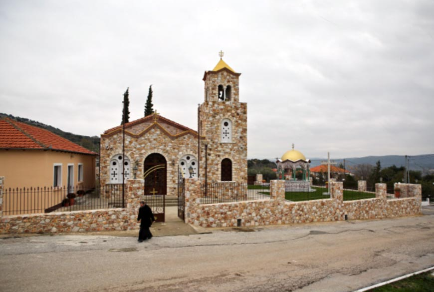 На живописном склоне горы Пангео, вблизи северогреческого города Кавала, находится посёлок Агиос Андреас, получивший своё название от монастыря Святого Андрея Первозванного, основанного в 1870 году русскими монахами со Святой горы Афон.