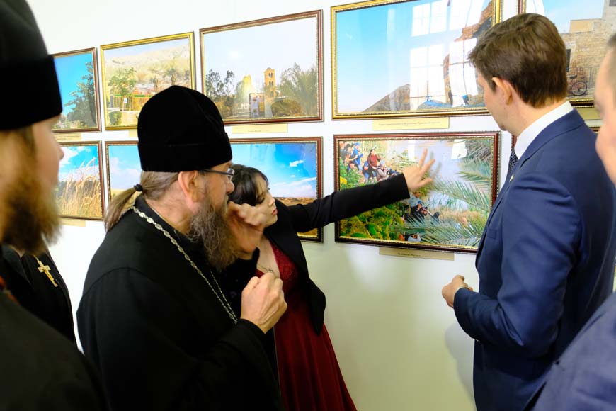 Открыл выставку митрополит Астраханский и Камызякский Никон, который отметил: «Радостно познакомиться с работами, представленными на выставке. Мне суждено было съездить в Иерусалим по святым местам в 1994 году. Тогда всё было по-другому, было непросто туда попасть. Это Евангелие в жизни, оно по-особому там ощущается».