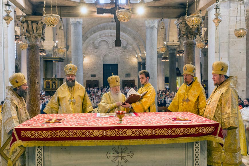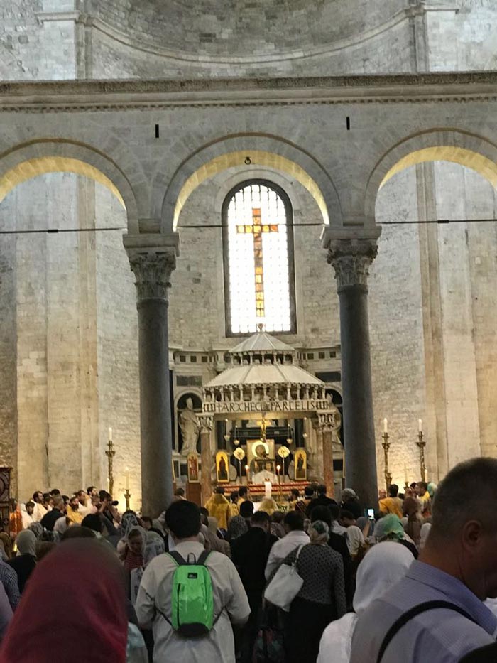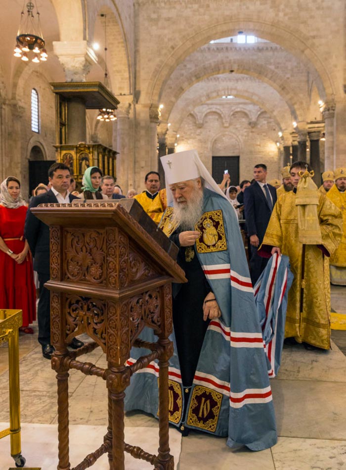Ранним утром 22 мая, в день праздника перенесения святых мощей святителя и чудотворца Николая из Мир Ликийских в Барград, представители ИППО молились у святых мощей в крипте базилики во имя святителя Николая. Богослужение возглавил митрополит Тамбовский и Рассказовский Феодосий. Возле святых мощей молились прибывшие из России архипастыри и пастыри, настоятель Патриаршего подворья святителя Николая Чудотворца г. Бари протоиерей Вячеслав Бачин, а также прилетевшие спецрейсом из Москвы паломники. Было совершено молебное пение с акафистом. Елена Агапова, Анна Громова, Дмитрий Курочкин, Татьяна Шумова и Маргарита Стегний вознесли молитвы у святых мощей – «правило веры и образ кротости» – и приложились к святым мощам святителя Николая.