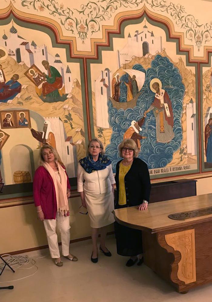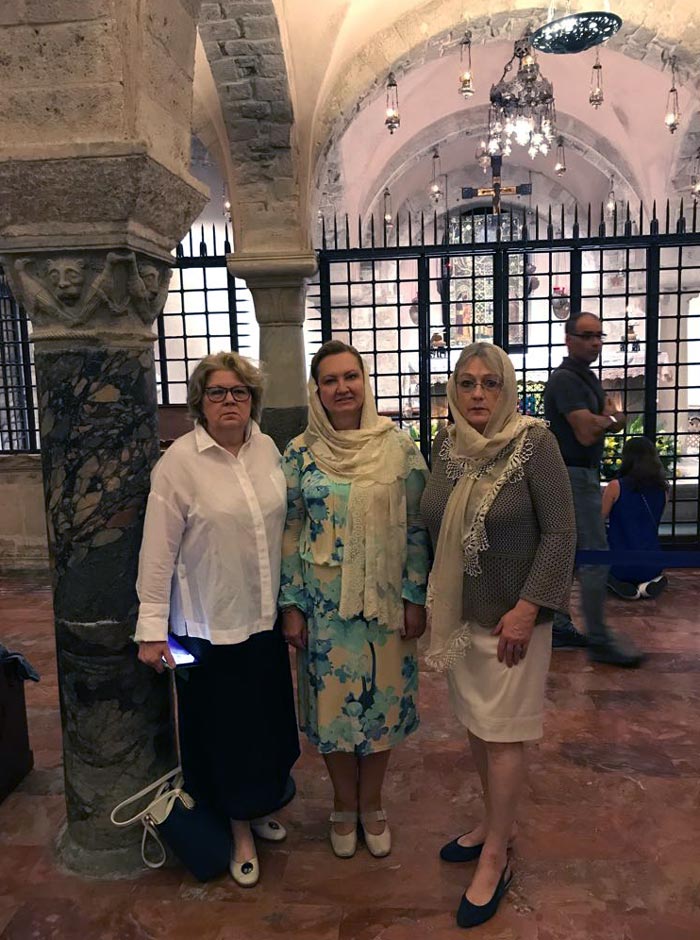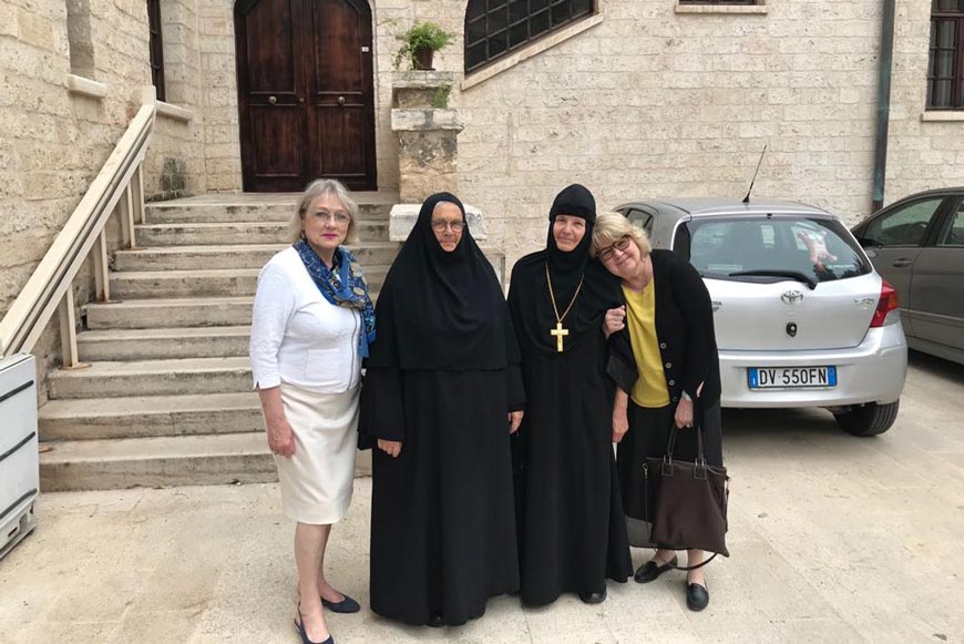 По окончании на территории Подворья прошла рабочая встреча Елены Агаповой, Анны Громовой и Маргариты Стегний с руководителем Представительства ИППО в Бари Ольгой Новичковой. Она проинформировала о ходе заключительного этапа официальной регистрации Представительства Общества, о развитии сотрудничества с представителями итальянской общественности. Стороны детально обсудили программу совместных действий, в том числе вопросы, связанные с подготовкой выставки, посвящённой благотворительной деятельности Великой княгини Елизаветы Фёдоровны и истории строительства под её патронатом Подворья в Бари, которая пройдёт в этом итальянском городе в декабре с.г. при участии итальянского Красного Креста и ряда других российских и итальянских организаций.