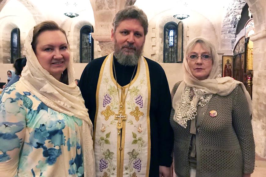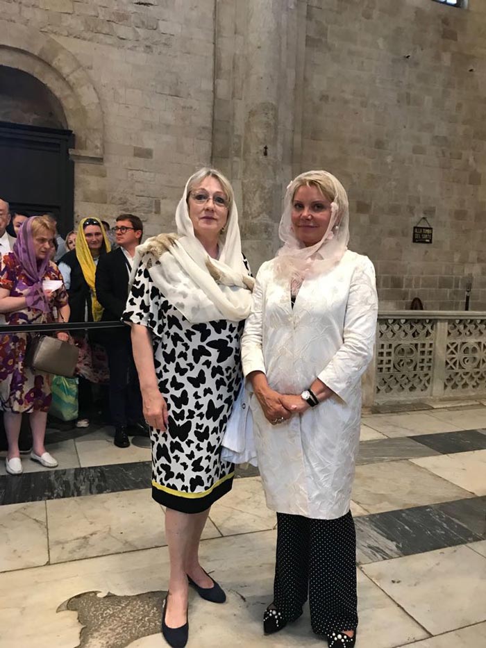 Праздничное богослужение прошло и в Русском Подворье – Патриаршем подворье святителя Николая. Елена Агапова и Анна Громова тепло поздравили с праздником протоиерея Вячеслава Бачина, настоятеля Патриаршего подворья святителя Николая в Бари.
