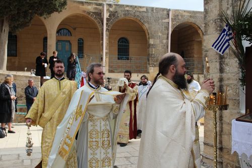 Утром 4 апреля торжественное богослужение и крестный ход состоялись в Вифании. Праздничную Литургию в монастыре святых Марфы и Марии возглавил Блаженнейший Патриарх Иерусалимский и всей Палестины Феофил, которому сослужило духовенство Святогробского братства и прочие клирики, в том числе врио начальника Русской Духовной Миссии в Иерусалиме игумен Феофан (Лукьянов), являющийся членом Совета Императорского Православного Палестинского Общества, - сообщает сайт Миссии.