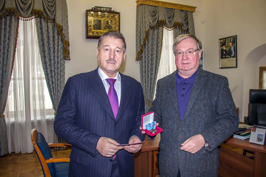 Сергей Степашин вручил ему членский билет и обсудил с ним ряд вопросов, связанных с деятельностью Общества, а также запланированные мероприятия, посвященные 100-летию революционных событий в России.