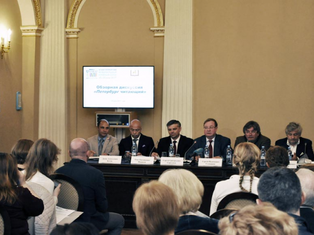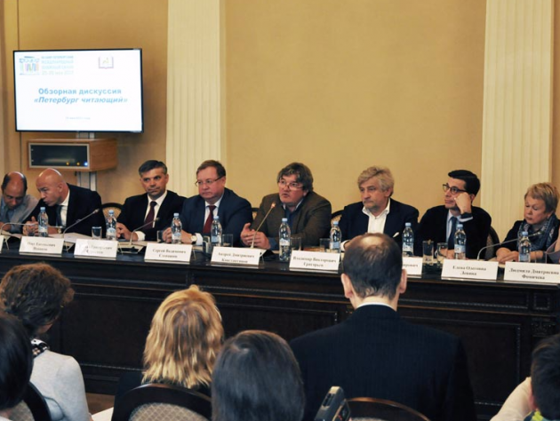 Далее в Доме журналиста прошла обзорная дискуссия «Петербург читающий», на которой обсуждалось текущее состояние книжной отрасли и культуры чтения в Санкт-Петербурге, тенденции развития инфраструктуры, новые методы работы с читателями, каналы распространения и продвижения книжной культуры. Наибольший интерес вызвали вопросы: «Что нужно, чтобы стать самым читающим регионом в России и мире?», «Каким образом может быть достигнута цель «Петербург – Всемирная столица книги» (по классификации ЮНЕСКО) к 2020 году?»