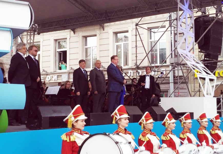 В церемонии торжественного открытия очередного Международного книжного салона, двенадцатого по счёту, приняли участие президент Российского книжного союза Сергей Степашин, председатель Совета Федерации Валентина Матвиенко, губернатор Санкт-Петербурга Полтавченко, почётный петербуржец, писатель Даниил Гранин. Гости оставили записи в книге пожеланий салона и сертификаты на приобретение книг военным училищам Санкт-Петербурга.