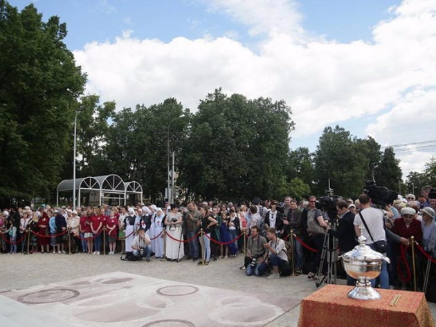 После открытия митрополит Кирилл совершил чин освящения памятника. Затем все присутствовавшие возложили к памятнику цветы.