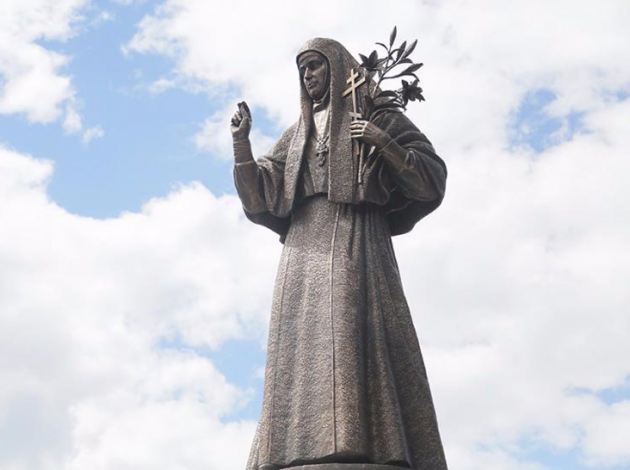 Скульптурная композиция высотой более 7 метров представляет образ Елисаветы Феодоровны, которая держит в руке крест и цветок лилии как символ чистоты и веры в Бога.