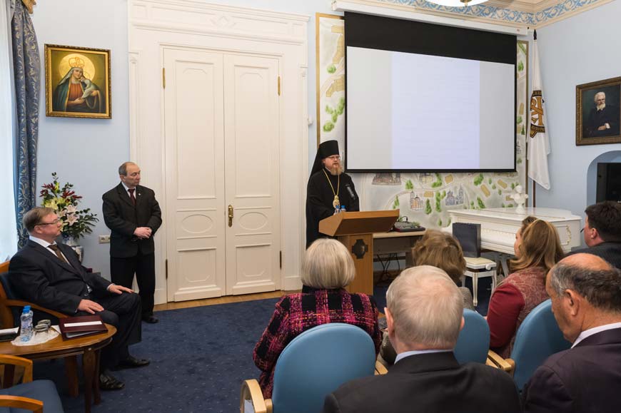 Сергей Степашин открыл заседание процедурой награждения наиболее отличившихся действительных членов ИППО. Он тепло поздравил члена Совета ИППО епископа Тихона Подольского с 50-летием, поблагодарил владыку за плодотворную совместную деятельность и вручил ему орден Великого князя Сергия Александровича.