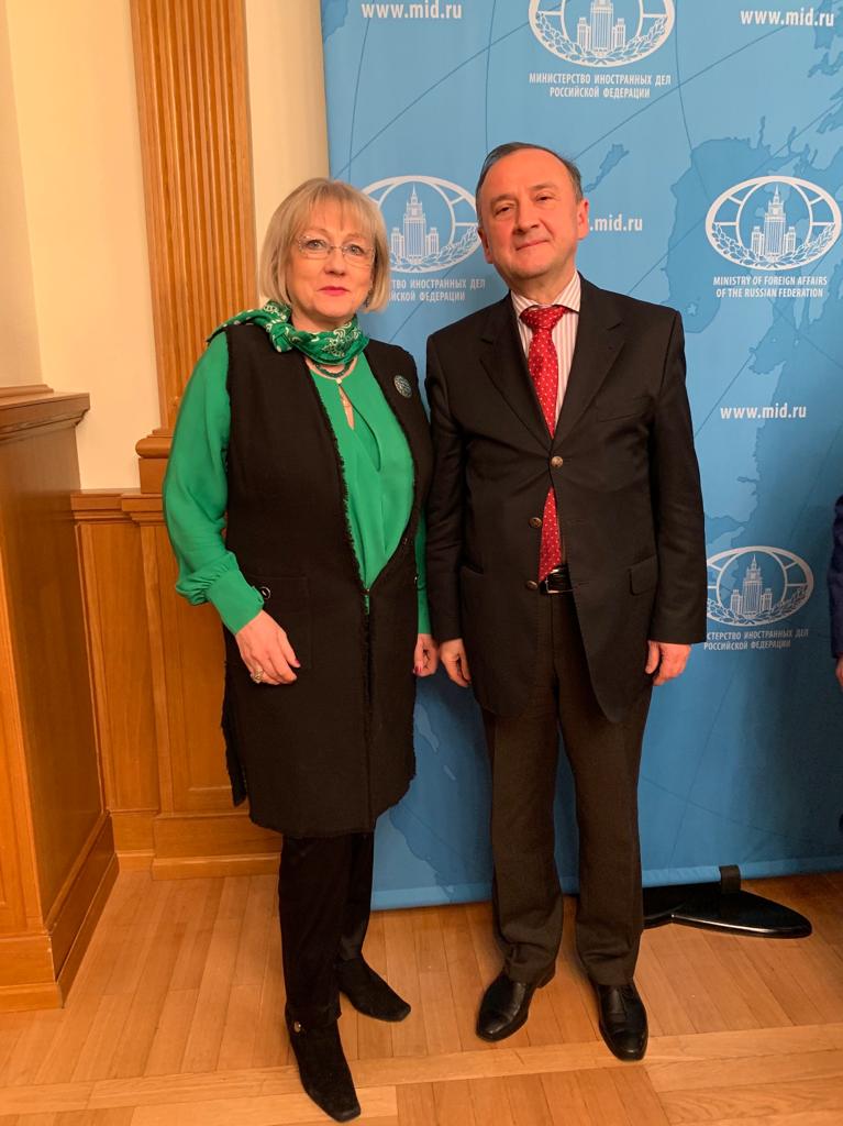 Зампред ИППО Елена Агапова с Директором Департамента МИД РФ по гуманитарному сотрудничеству и правам человека Ринатом Аляутдиновым