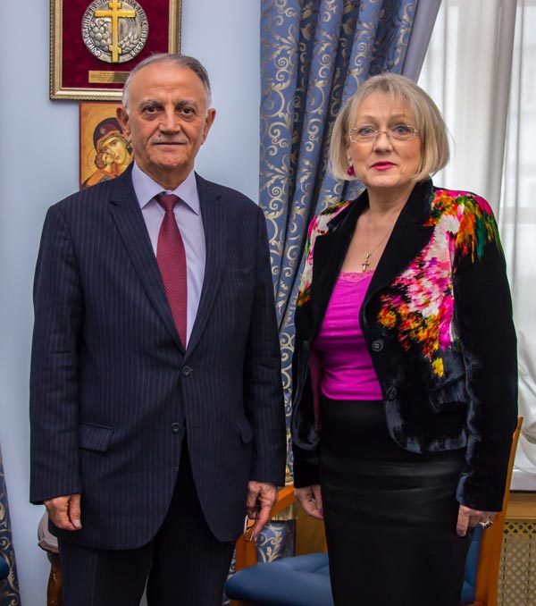 Елена Агапова рассказала гостям о том, что гуманитарная миссия ИППО в Эрбиль была проведена по благословению Патриарха Московского и всея Руси Кирилла. Она проинформировала их о гуманитарной помощи Общества, направляемой в поддержку сирийского народа, о деятельности по защите христиан на международных площадках в СПЧ ОНН, ОБСЕ, Совете Европы. Тема защиты христианства – одна из приоритетных для старейшей неправительственной организации.