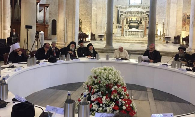 Встреча началась у входа в базилику святителя Николая, где Папа Франциск приветствовал прибывших глав и членов делегаций Восточных Церквей. Затем Папа, Патриархи и представители Церквей проследовали в крипту базилики, чтобы поклониться мощам святителя Николая. Мероприятие продолжилось молитвой о мире на Ближнем Востоке, которая прошла на специально сооружённой площадке на морской набережной г. Бари; в молитве приняли участие тысячи жителей и гостей города.