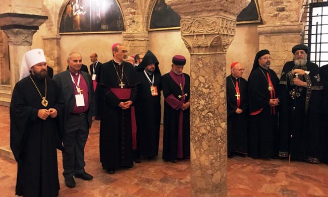 Во встрече приняли участие Папа Римский Франциск, Патриарх Константинопольский Варфоломей, Патриарх Александрийский и всей Африки Феодор II, Патриарх Коптской Церкви Тавадрос II, Патриарх Сирийской Ортодоксальной Церкви Игнатий Ефрем II, Католикос Киликийский Арам I (Армянская Апостольская Церковь), Католикос-Патриарх Ассирийской Церкви Востока Мар Геваргис II, Патриарх Коптской Католической Церкви Ибрагим, Патриарх Сиро-Католической Церкви Игнатий Юсеф III, Маронитский Патриарх Антиохийский и всего Востока кардинал Бешара Бутрос ар-Раи, Патриарх Халдейской Католической Церкви кардинал Луис Рафаэль I, Патриарх Армянской Католической Церкви кардинал Григор Бедрос XX, архиепископ Антедонский Нектарий (представитель Патриарха Иерусалимского Феофила III), митрополит Констанции-Аммохостоса Василий (представитель Архиепископа Новой Юстинианы и всего Кипра Хризостома II), епископ Великобританский и Ирландский Оваким (представитель Верховного Патриарха и Католикоса всех армян Гарегина II), архиепископ Алеппский Жан-Клеман Жанбар (представитель мелькитского Патриарха Антиохийского и всего Востока Юсефа), апостольский администратор Латинского Иерусалимского Патриархата епископ Пьербаттиста Пиццабалла, епископ Евангелическо-Лютеранской церкви Иордании и Святой Земли Сани Ибрагим Азар, а также генеральный секретарь Ближневосточного совета Церквей д-р Сурайя Бешалани.