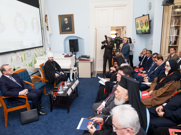 В работе круглого стола приняли участие заместитель министра иностранных дел России, спецпредставитель Президента РФ по Ближнему Востоку и странам Африки Михаил Богданов, председатель Отдела внешних церковных связей Московского Патриархата митрополит Волоколамский Иларион, член Совета Федерации известный ведущий телепрограммы «Постскриптум» Алексей Пушков, специалист-международник Михаил Маргелов, директор Государственного Эрмитажа, востоковед Михаил Пиотровский.