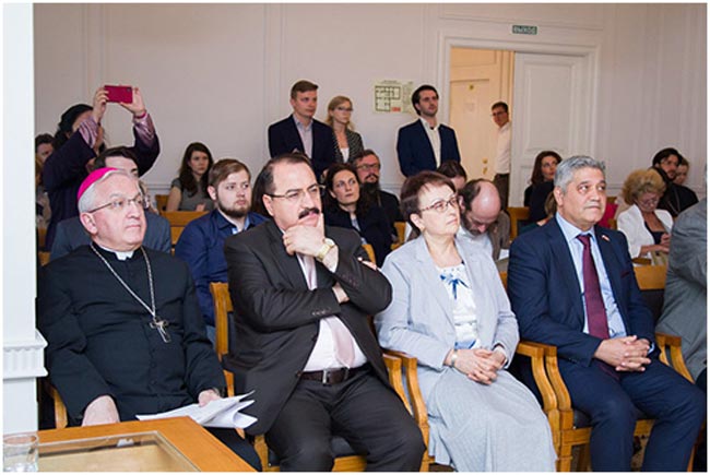 В круглом столе, организованном Отделом внешних церковных связей Московского Патриархата при поддержке Общецерковной аспирантуры и докторантуры, Благотворительного фонда «Познание», Благотворительного фонда «Линия жизни» и Научно-практического центра детской психоневрологии Департамента здравоохранения города Москвы, приняли участие: председатель Отдела внешних церковных связей, ректор Общецерковной аспирантуры и докторантуры митрополит Волоколамский Иларион; заместитель министра иностранных дел Российской Федерации, специальный представитель президента Российской Федерации по Ближнему Востоку и странам Африки М. Л. Богданов; директор Департамента медицинской помощи детям и службы родовспоможения Министерства здравоохранения Российской Федерации Е. Н. Байбарина; президент Благотворительного фонда «Линия жизни» Ф. Я. Захарова; президент НИИ неотложной детской хирургии и травматологии Л. М. Рошаль; директор Научно-практического центра детской психоневрологии Департамента здравоохранения города Москвы Т. Т. Батышева; посол Сирийской Арабской Республики в Российской Федерации Рияд Хаддад; апостольский нунций в Российской Федерации архиепископ Челестино Мильоре; представитель Патриарха Антиохийского и всего Востока при Патриархе Московском и всея Руси митрополит Филиппопольский Нифон; заместитель Председателя Императорского Православного Палестинского Общества Е. А. Агапова; президент Клуба выпускников российских (советских) вузов в Ливане Ражи Аль Али и другие.