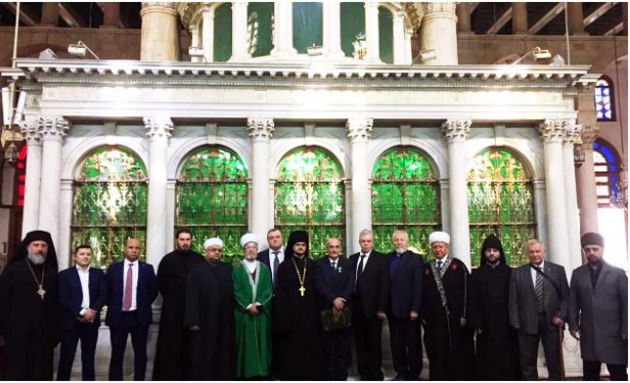 Как сообщалось ранее, по благословению Святейшего Патриарха Московского и всея Руси Кирилла решением председателя Отдела внешних церковных связей Московского Патриархата митрополита Волоколамского Илариона в состав делегации входили: референт Управления Президента Российской Федерации по внутренней политике, ответственный секретарь Совета по взаимодействию с религиозными объединениями при Президенте РФ С. А. Мельников; член Президиума Центрального духовного управления мусульман России имам-мухтасиб Тюменской области Ильдар Зиганшин; председатель Духовного собрания мусульман России муфтий Альбир Крганов; первый заместитель председателя Центрального духовного управления Республики Дагестан Ахмад Кахаев; начальствующий епископ Российского объединённого союза христиан веры евангельской С. В. Ряховский; викарий главы Российской и Ново-Нахичеванской епархии Армянской Апостольской Церкви архимандрит Погос Варданян; исполнительный директор Межрелигиозного фонда содействия реализации совместных гуманитарных проектов, эконом Заиконоспасского монастыря г. Москвы иеромонах Ермоген (Корчуков); председатель Московского отделения Императорского Православного Палестинского Общества С. Л. Байдаков; сопредседатель Комитета солидарности с народами Ливии и Сирии Н. А. Кускова; руководитель Международного отдела Духовного собрания мусульман России имам М. М. Мирсаяпов; член Центрального духовного управления мусульман России А. А. Таштимиров; сопредседатель Комитета солидарности с народами Ливии и Сирии, член Совета ИППО О. И. Фомин; председатель РОО «Арабская диаспора» Х. Насралла, представители российских телеканалов и информационных агентств.