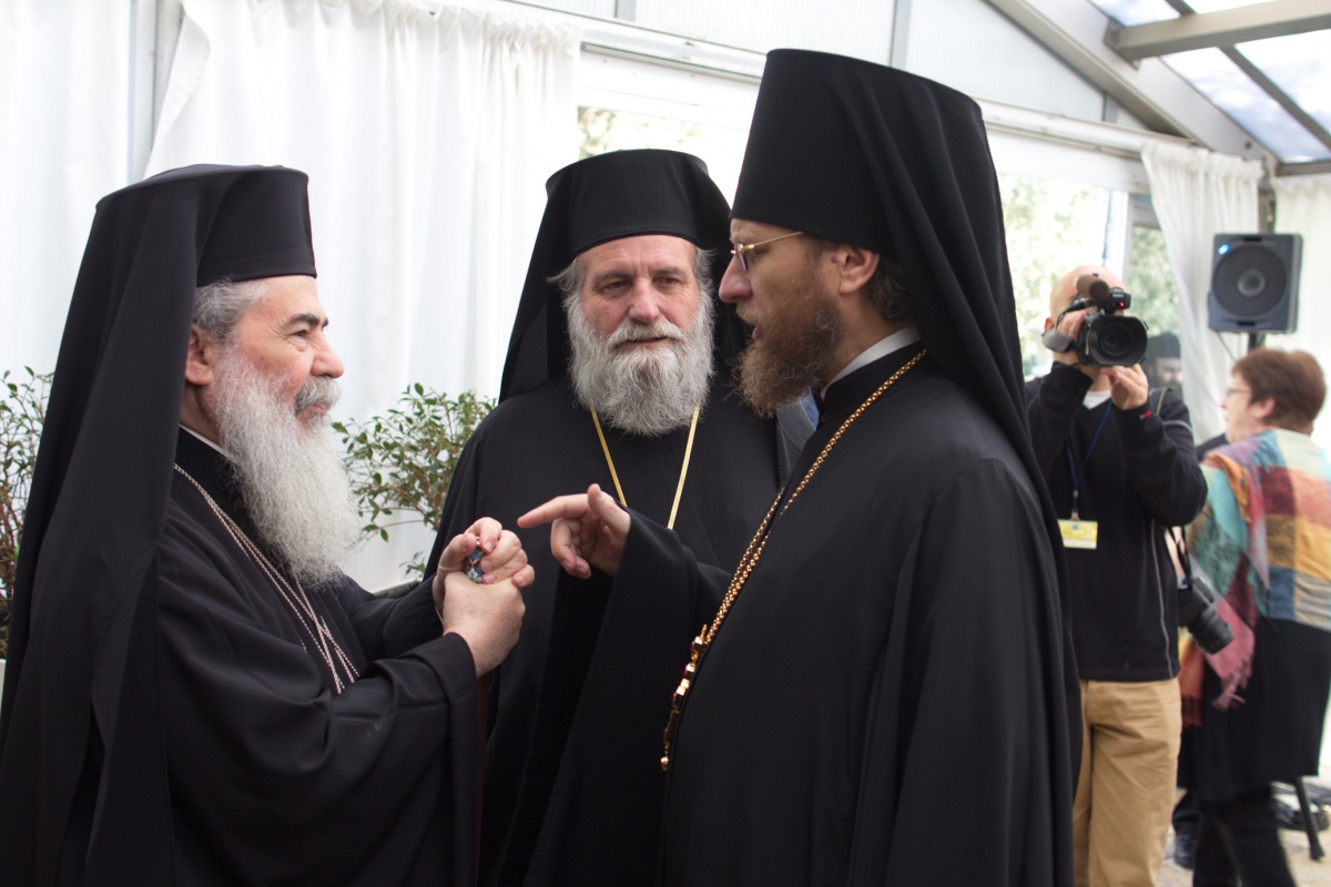Диалог изгоняет предубеждение и помогает почувствовать сострадание по отношению к другому». Поэтому христианские Церкви Святой Земли считают диалог одной из важнейших задач своей совместной миссии, и, хотя работа в этом направлении продолжается и еще многое предстоит сделать, положительные результаты этого начинания уже налицо. Плодом и видимым выражением этого диалога стала, в частности, встреча Римского Папы Франциска с Вселенским Патриархом Варфоломеем в храме Гроба Господня весной уходящего года. Святая Земля – свидетель диалога между Богом и человеком, отметил Патриарх Феофил. «Здесь Божественное присутствие явило Себя людям, здесь встретились священная история и вечность, и в этом Богочеловеческом диалоге мы видим парадигму для нашего собственного диалога, совершающегося между различными народами и традициями», – сказал он.