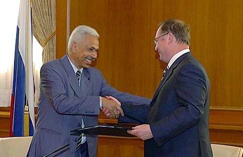 У входа на российский участок в Иерихоне слева направо: мэр Иерихона Х. Салех, управляющий делами Президента Российской Федерации В.И Кожин, губернатор Иерихона К. Хамид и представитель России в Палестинской Национальной Администрации С. Г. Козлов.