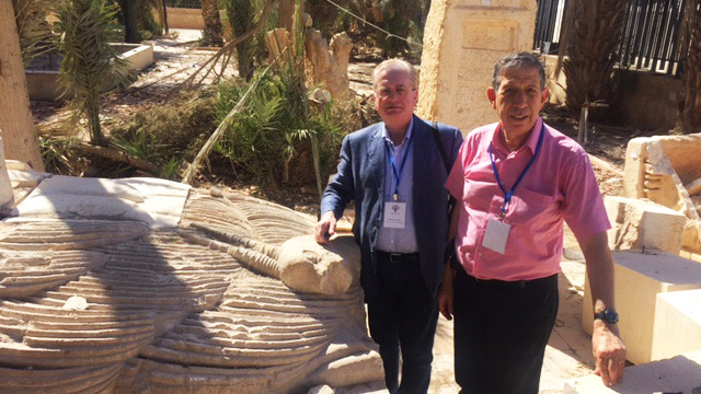 Вместе с директором Института археологии РАН Н. А. Макаровым и начальником управления древностей Сирии Мамуном Абд ал-Каримом Михаил Борисович Пиотровский осмотрел повреждённые памятники и музей Пальмиры. По итогам осмотра участники обсудили объём и характер экстренных мер по их возрождению.