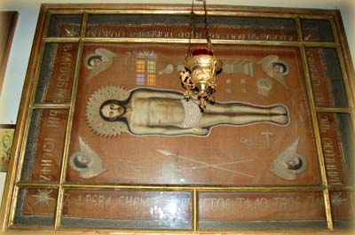 ![]() Мемориальная памятная мраморная доска архимандриту Иринарху. Расположена в приделе пророков Моисея и Илии |