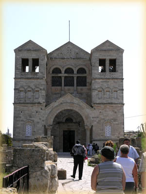 Трагическому испытанию подвергаются оба монастыря в XII веке, когда Салах-ад-Дин/29/ в 1183 году подверг атаке греческий православный монастырь, монахи которого скрылись по подземному переходу в католическом, который был по своей постройке подобен крепости. Этот монастырь продержался еще до поражения крестоносцев в битве с мусульманами в 1187 году/30/. После этого войска Салах-ад-Дина избили живущих на Фаворе христиан и выгнали оттуда всех монахов. В 1212 году брат Салах-ад-Дина Мелек-Адель воздвиг на вершине Фаворской горы грандиозную крепость для отражения нападений со стороны крестоносцев, державшихся еще в Птолемаиде. В 1263 году, когда господство мусульман прочно укрепилось на Святой Земле, по повелению тогдашнего султана все укрепления Фаворской горы были срыты, и памятником бывшей некогда здесь жизни оставались лишь груди камней и мусора. Анонимный греческий паломник 1253–54 года, говоря о Фаворской горе, замечает, что «на средине горы находится та пещера, в которой Мелхиседек пробыл 40 лет»/31/. О каких либо иных сооружениях здесь, монастырях или храмах он хранит полное молчание/32/.