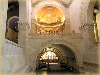 Интерьер католической базилики Преображения Господня на горе Фавор