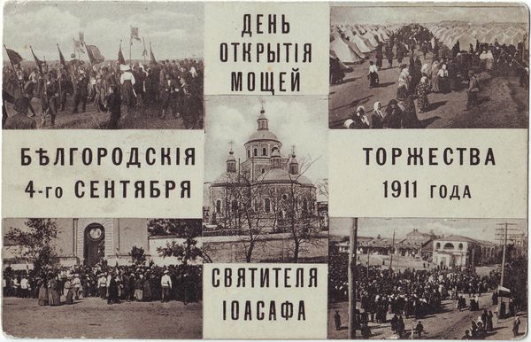 Первый очерк повествует о торжествах церковного прославления святителя и чудотворца Иоасафа Белгородского, состоявшихся 4 сентября 1911 года в Белгороде. Очерк составлен их участником, преподавателем Курской Духовной семинарии Георгием Ивановичем Булгаковым. Непосредственными участниками этих торжеств были Великая Княгиня Елисавета Феодоровна и Великий Князь Константин Константинович.